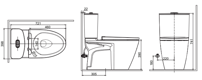 - Tâm thoát bồn cầu : 300mm (+-5)
