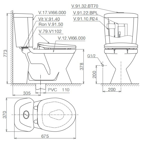 Thông tin cơ bản bồn cầu Viglacera VI66