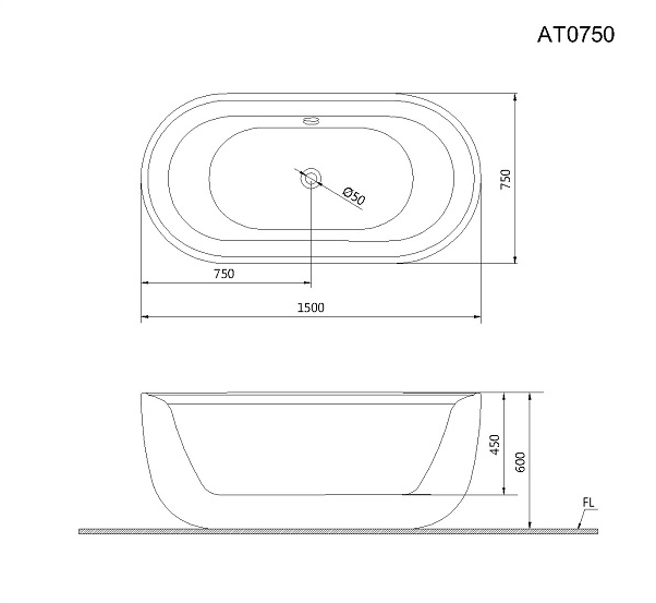 Thông số bồn tắm đặt sàn Caeasr AT0750 1.5M