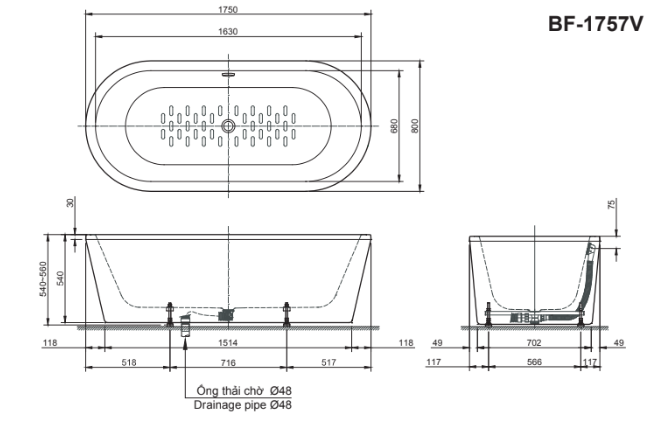 Thông tin cơ bản bồn tắm INAX BF-1757V lập thể