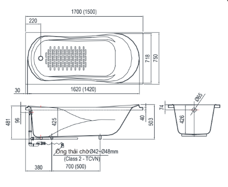 - Kiểu: Bồn tắm nằm, không yếm