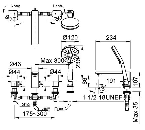 - Tên sản phẩm: Sen bồn tắm gắn thành bồn nóng lạnh INAX
