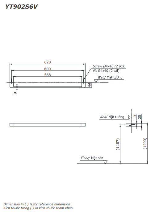 - Kích thước : 628 × 44 x 25 mm