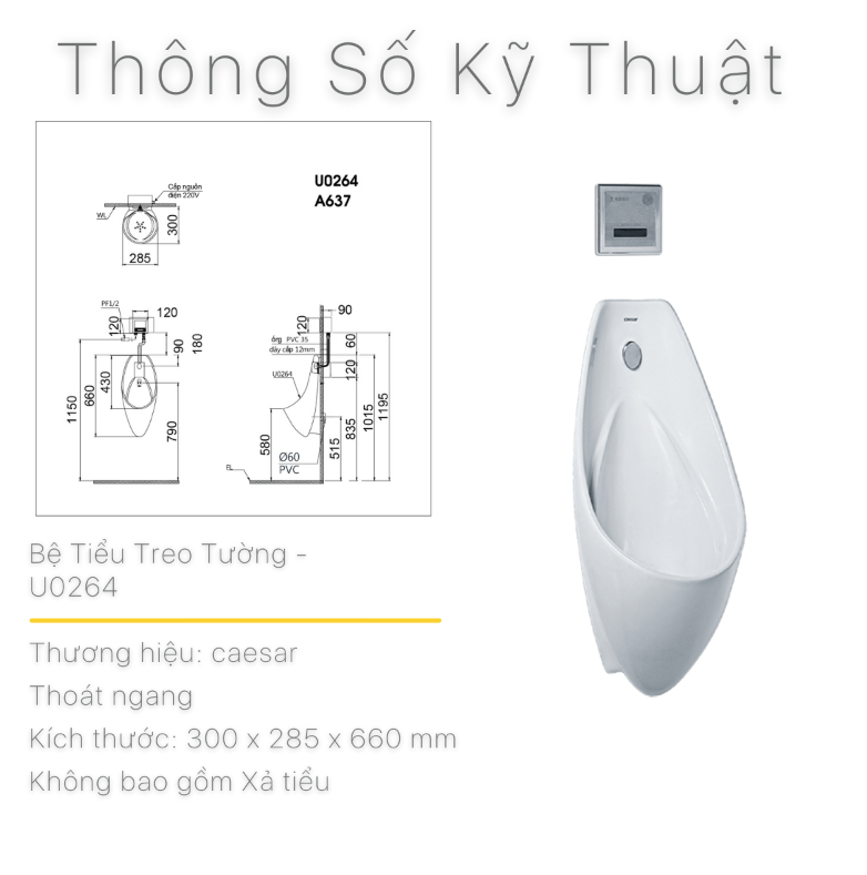 Thông tin cơ bản bồn tiểu nam Caesar U0264